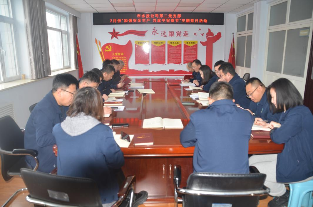 按照市水投公司黨委統(tǒng)一部署要求,第二黨支部于2024年2月5日下午組織全體黨員、積極分子開展了“加強安全生產(chǎn) 共度安全春節(jié)”主題黨日活動,會議由支部書記吳爭兵主持。