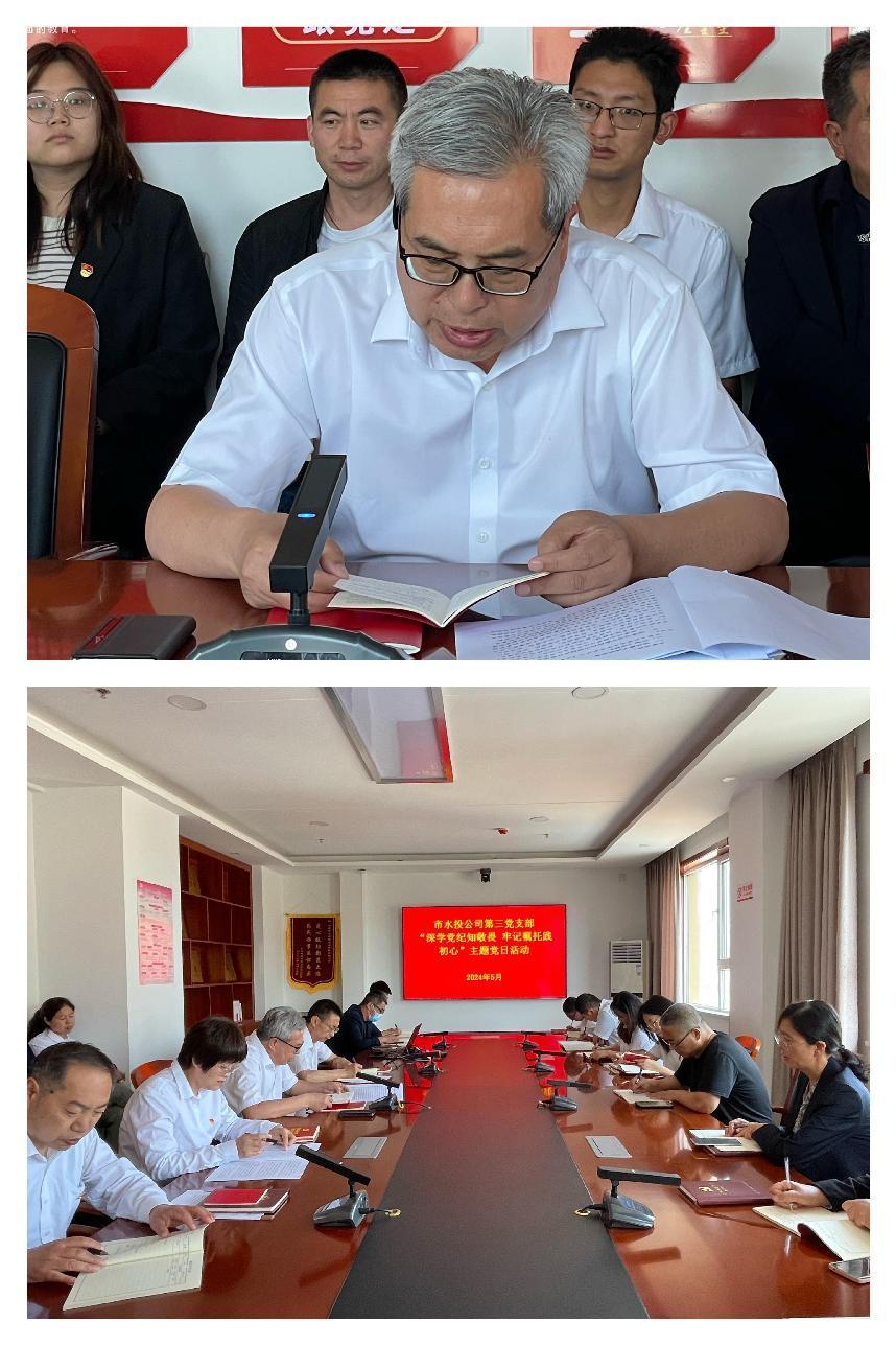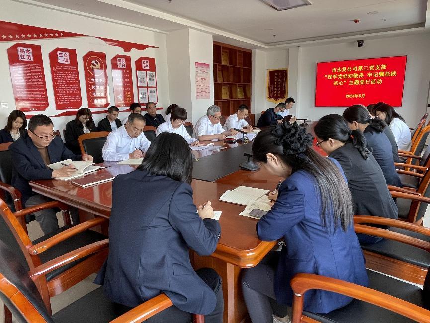 按照市委組織部《關(guān)于認(rèn)真開展2024年5月黨支部主題黨日活動(dòng)的通知》要求,結(jié)合水投公司黨委安排部署,5月6日下午,第三支部組織黨員開展了“深學(xué)黨紀(jì)知敬畏 牢記囑托踐初心”主題黨日活動(dòng)。