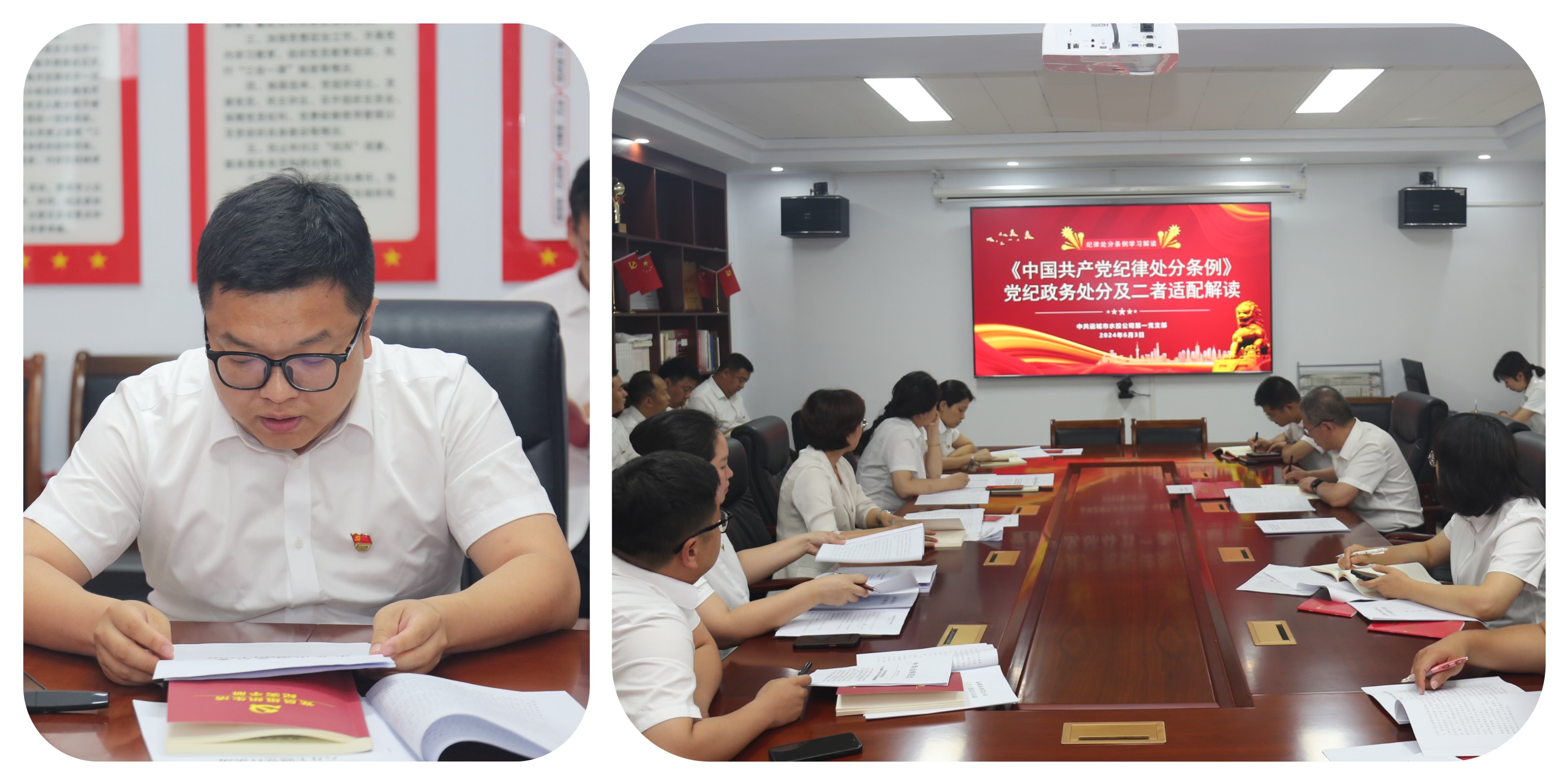 會上全體黨員齊誦《黨章》第四章“黨的地方組織”內(nèi)容。支委成員帶領(lǐng)大家認(rèn)真學(xué)習(xí)了5月27日中共中央政治局會議精神、習(xí)近平總書記在山東考察及在企業(yè)和專家座談會上的重要講話精神、第9期、第10期《求是》雜志刊發(fā)的習(xí)近平總書記重要文章、《關(guān)于認(rèn)真學(xué)習(xí)貫徹習(xí)近平總書記重要講話精神 扎實(shí)開展黨紀(jì)學(xué)習(xí)教育的通知》(中黨建發(fā)〔2024〕1號)、《關(guān)于認(rèn)真學(xué)習(xí)領(lǐng)會習(xí)近平總書記關(guān)于全面加強(qiáng)黨的紀(jì)律建設(shè)的重要論述 扎實(shí)開展黨紀(jì)學(xué)習(xí)教育的通知》(中黨建發(fā)〔2024〕2號)、省委書記唐登杰在文物保護(hù)利用和文化遺產(chǎn)保護(hù)傳承推進(jìn)座談會上的講話精神、全省和全市黨紀(jì)學(xué)習(xí)教育警示教育會精神以及全市一季度項(xiàng)目建設(shè)推進(jìn)會精神,會議還傳達(dá)了《中共山西省紀(jì)律檢查委員會關(guān)于楊海兵等人違反中央八項(xiàng)規(guī)定精神問題的通報》。