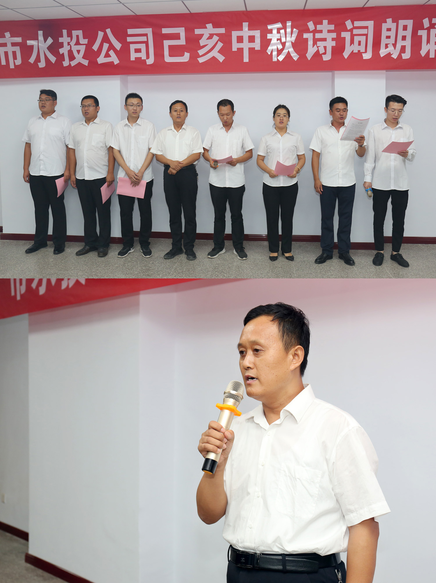 朗誦會(huì)開(kāi)始前,公司黨委書(shū)記、董事長(zhǎng)兼總經(jīng)理崔作銘致辭,向為水投建設(shè)發(fā)展辛勤耕耘默默奉獻(xiàn)的全體員工致以誠(chéng)摯的問(wèn)候和衷心的感謝,同時(shí)預(yù)祝各位員工中秋佳節(jié)快樂(lè)家庭幸福、身體健康。他希望全體員工“守初心、擔(dān)使命,找差距、抓落實(shí)”,以“長(zhǎng)風(fēng)破浪會(huì)有時(shí),直掛云帆濟(jì)滄海”的豪情,以“千淘萬(wàn)漉雖辛苦,吹盡狂沙始到金”的毅力,以抓鐵留痕,踏石留印的執(zhí)行精神,再寫(xiě)傳奇,再譜新篇!