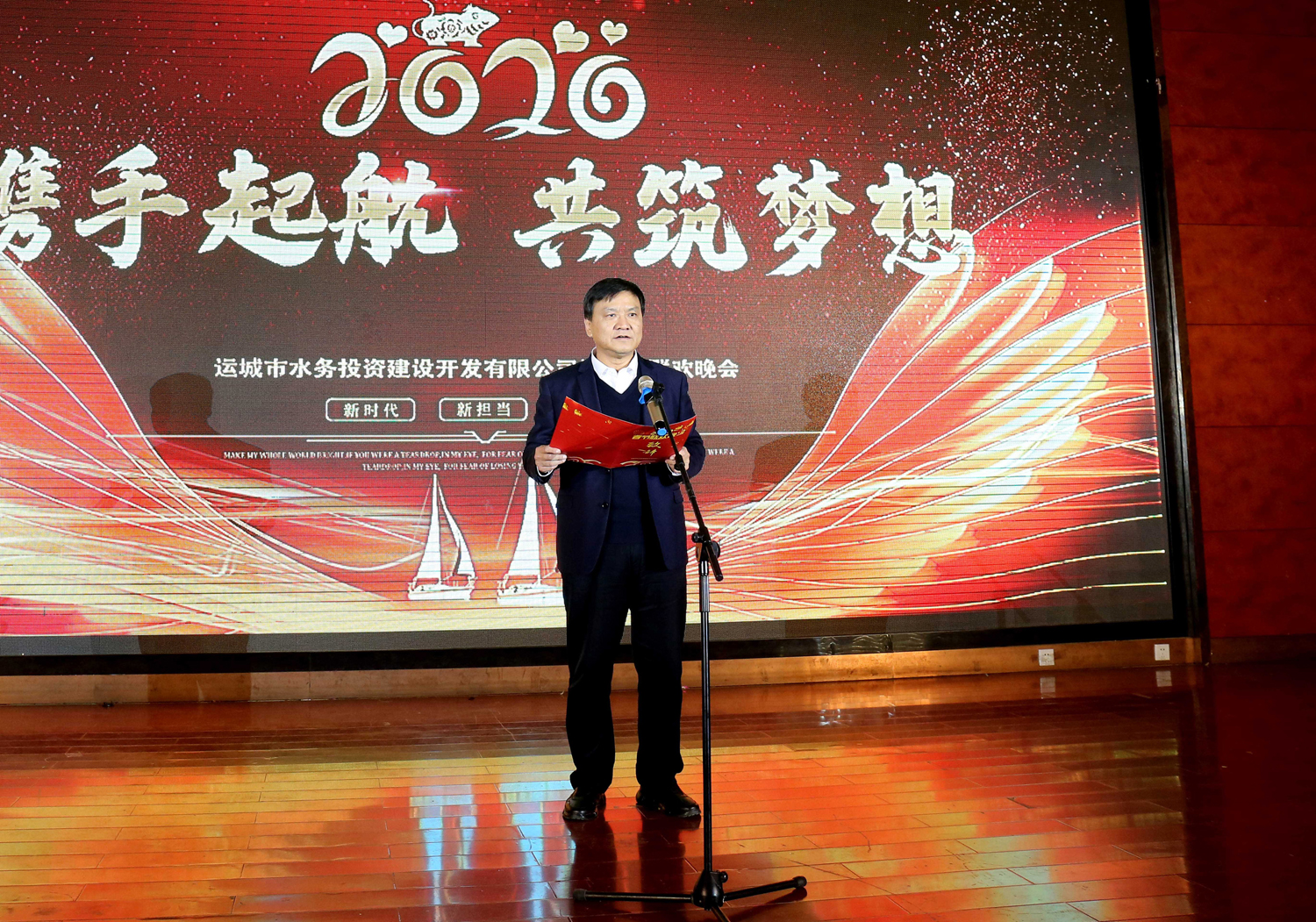 首先公司黨委書記、董事長兼總經理崔作銘致新年賀詞,代表公司班子感謝市國資委、山西建工集團領導光臨晚會,感謝所有員工對公司發(fā)展的辛勤奮斗,并向全體人員致以節(jié)日的問候和祝福?;仡?/font>2019,水投公司成績顯著;展望2020,還需篤定心志負重前行。他指出要以習近平新時代中國特色社會主義思想為指引,貫徹落實習總書記“三篇光輝文獻”精神,緊緊圍繞市委市政府水系項目建設,不忘初心,牢記使命,以構建生態(tài)水系,打造優(yōu)美環(huán)境,建設宜居城市,造福人民群眾的信念,只爭朝夕,不負韶華,積極推動水系項目建設。