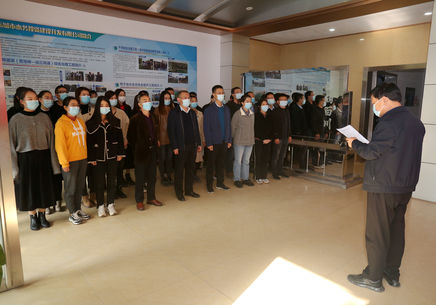 公司董事長(zhǎng)兼總經(jīng)理崔作銘作出重要講話,對(duì)我公司全體人員提出三點(diǎn)要求:一是要提高認(rèn)識(shí),擔(dān)責(zé)克難;二是要強(qiáng)化執(zhí)行,真演真練;三是要堅(jiān)持不懈,抓常抓長(zhǎng)。要求我公司人員要牢固樹立防范重于處置的理念,變被動(dòng)應(yīng)對(duì)為超前防范,做好秋冬季疫情防控工作,把風(fēng)險(xiǎn)因素降到最低程度,為公司經(jīng)營發(fā)展做大做強(qiáng)創(chuàng)造穩(wěn)定的環(huán)境。